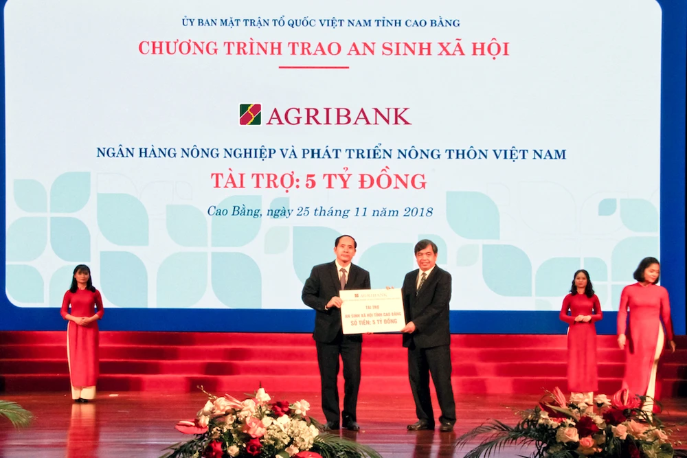 Nhân dịp này, Agribank đã trao tặng 5 tỉ đồng để xây dựng các công trình giáo dục, y tế, phúc lợi xã hội trên địa bàn tỉnh Cao Bằng.