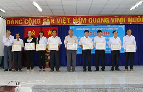 | Tại hội nghị, 19 tập thể và 21 cá nhân đã được chủ tịch UBND huyện Bình Chánh tặng giấy khen về việc thực hiện tốt chính sách tín dụng phục vụ phát triển nông nghiệp nông thôn theo Nghị định 41/2010 của Chính phủ. |
