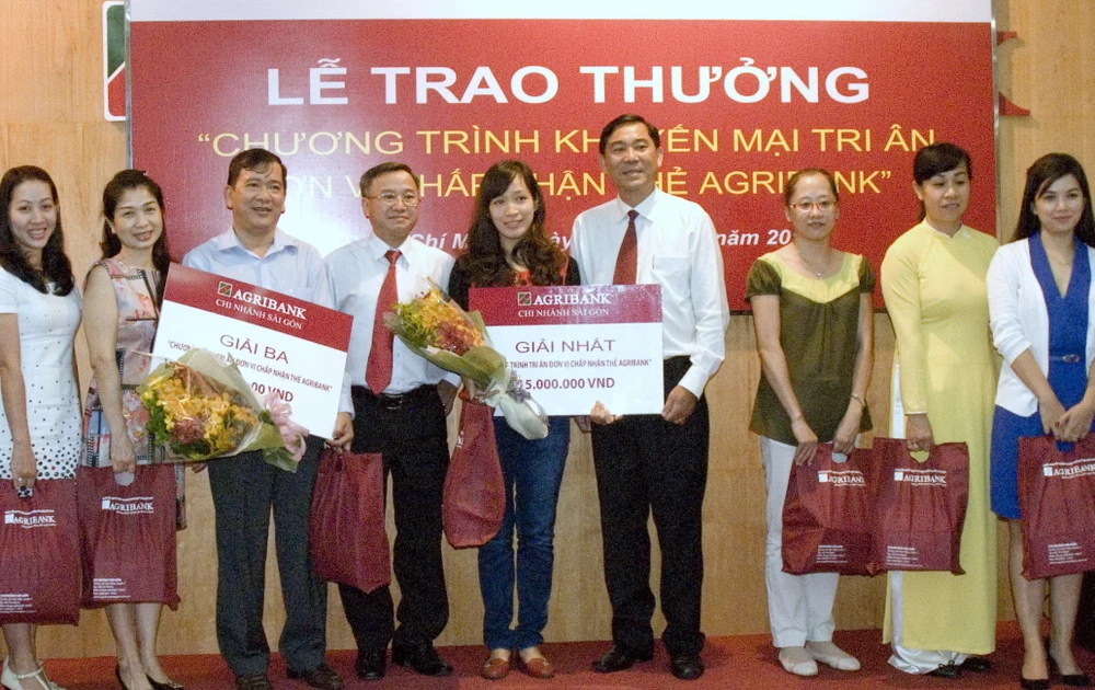Đặc biệt, phải kể đến chương trình "Tri ân đơn vị chấp nhận thẻ Agribank" được triển khai trong toàn hệ thống từ ngày 1-7 đến hết 15-8-2015 đã đạt được những kết quả hết sức đáng khích lệ. Theo đó, Agribank miễn phí chiết khấu trong thời gian ba tháng đối với giao dịch thẻ Agribank và tặng thưởng cho 60 ĐVCNT có doanh số thanh toán lớn, tổng giá trị giải thưởng lên tới 340 triệu đồng.