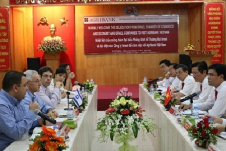 Ông Zafrir Asaf – Tham tán thương mại đại sứ quán Israel cùng Đoàn đại diện Phòng kinh tế thương mại Israel làm việc với Agribank tại TP HCM.