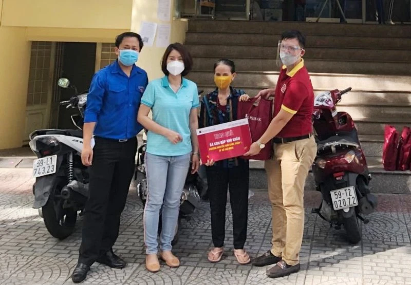 Theo đó, Agribank chi nhánh Sài Gòn đã tặng 200 phần quà, gồm nhu yếu phẩm và áo đi mưa cho người dân trong khu vực bị cách ly, các chốt bảo vệ vùng xanh, người lao động có hoàn cảnh khó khăn trên địa bàn.