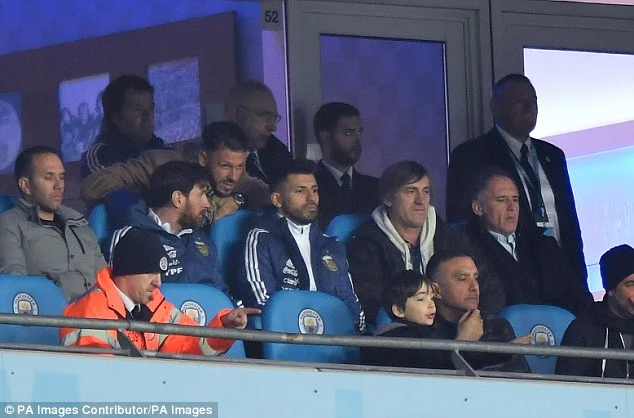 Aguero cùng với Messi ngồi trên khán đài sân Etihah ở TP Manchester theo dõi đội nhà Argentina thắng Ý 2-0 trong trận giao hữu cuối tuần trước.