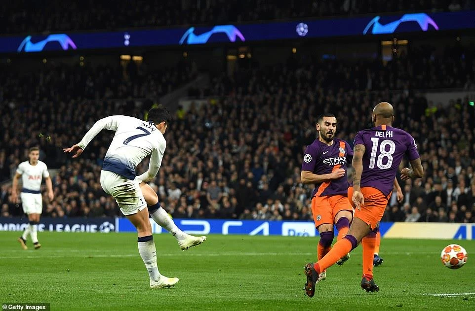 Tưởng chừng như Tottenham bế tắc hoàn toàn trong việc tìm kiếm bàn thắng, thì phút 78 tiền đạo người Hàn Quốc biết cách tỏa sáng để giúp đội chủ nhà vượt lên dẫn trước. Từ đường chuyền của Eriksen, Son Heung-Min bứt tốc để đón đường chuyền của đồng đội. Số 7 của Tottenham ngoặt bóng lại để đánh bại hậu vệ cánh Fabian Delph của Man. City rồi nhanh chân dứt điểm mở tỷ số 1-0 cho Tottenham.