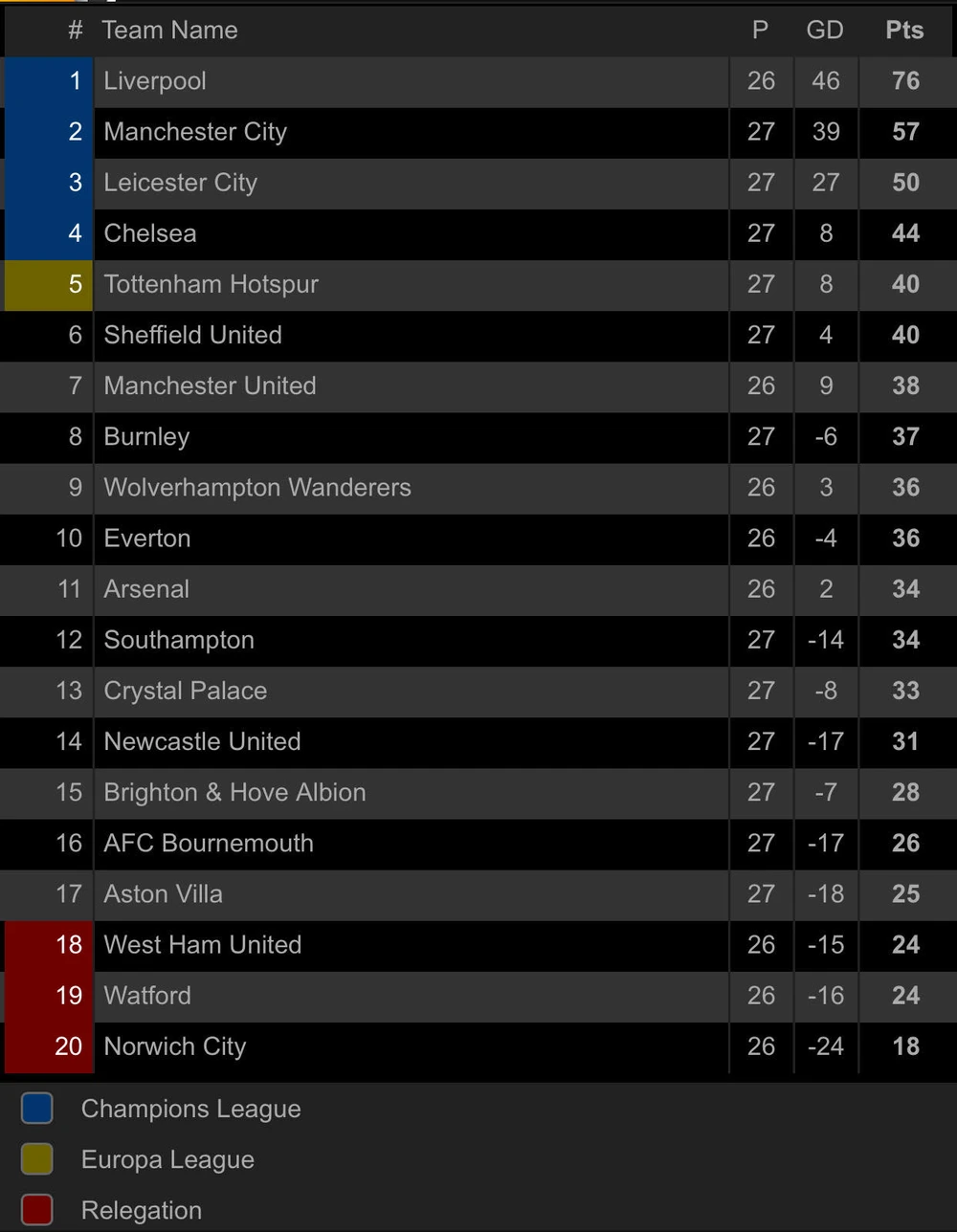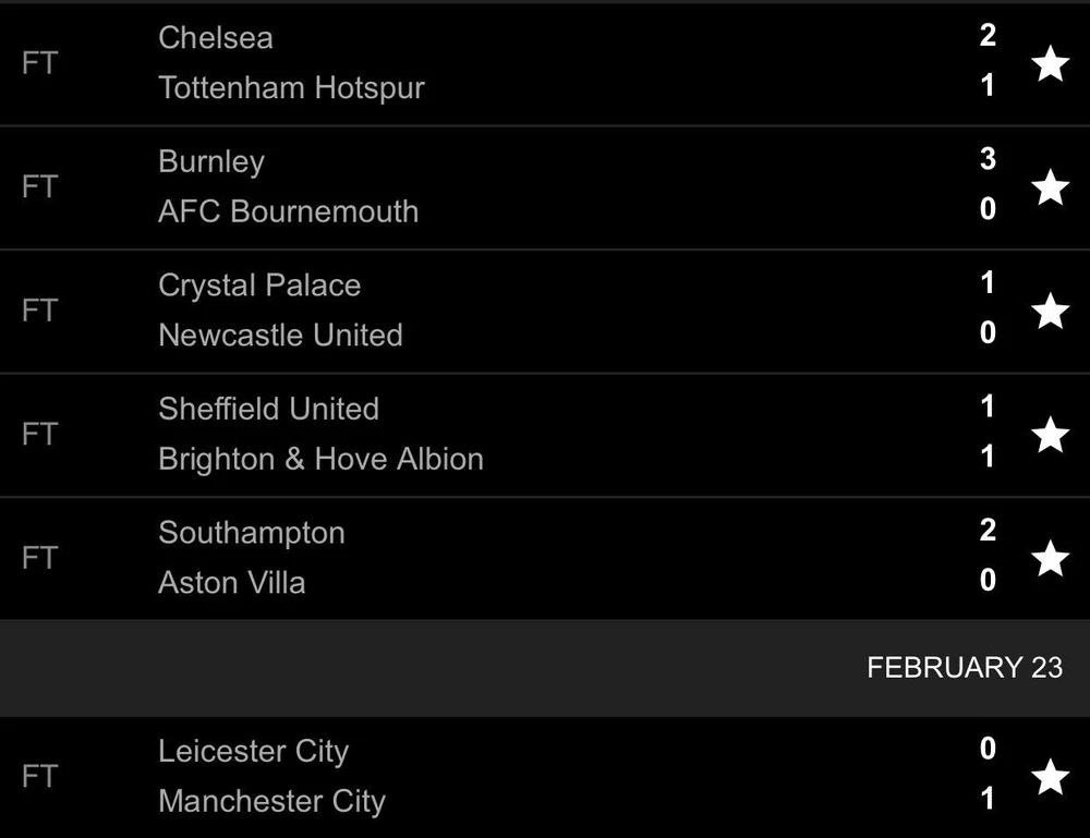 Đánh bại Leicester City ngay tại sân King Power, Man. City có được vị trí nhì bảng với 57 điểm, Leicester City mặc dù thua trong trận đấu này nhưng “Bầy cáo” vẫn cầm chắc vị trí thứ ba với 50 điểm, hơn đội hạng tư là Chelsea 6 điểm.