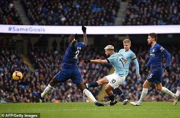Không tấn công ồ ạt như hiệp một, nhưng Man. City vẫn có được bàn thắng thứ năm bằng cú hattrick của Aguero. Phút 56 Sterling bị hậu vệ Azpilicueta đốn ngã trong vòng cấm, mang về phạt đền cho “nửa xanh” thành Manchester. Trên chấm phạt đền Aguero dễ dàng đánh lừa thủ môn Kepa nâng tỉ số lên 5-0 cho đội nhà,