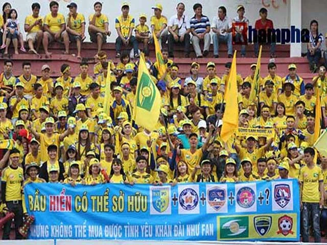 Cổ động viên SL Nghệ An mỉa mai tình trạng một ông chủ có nhiều đội bóng. Ảnh: TM