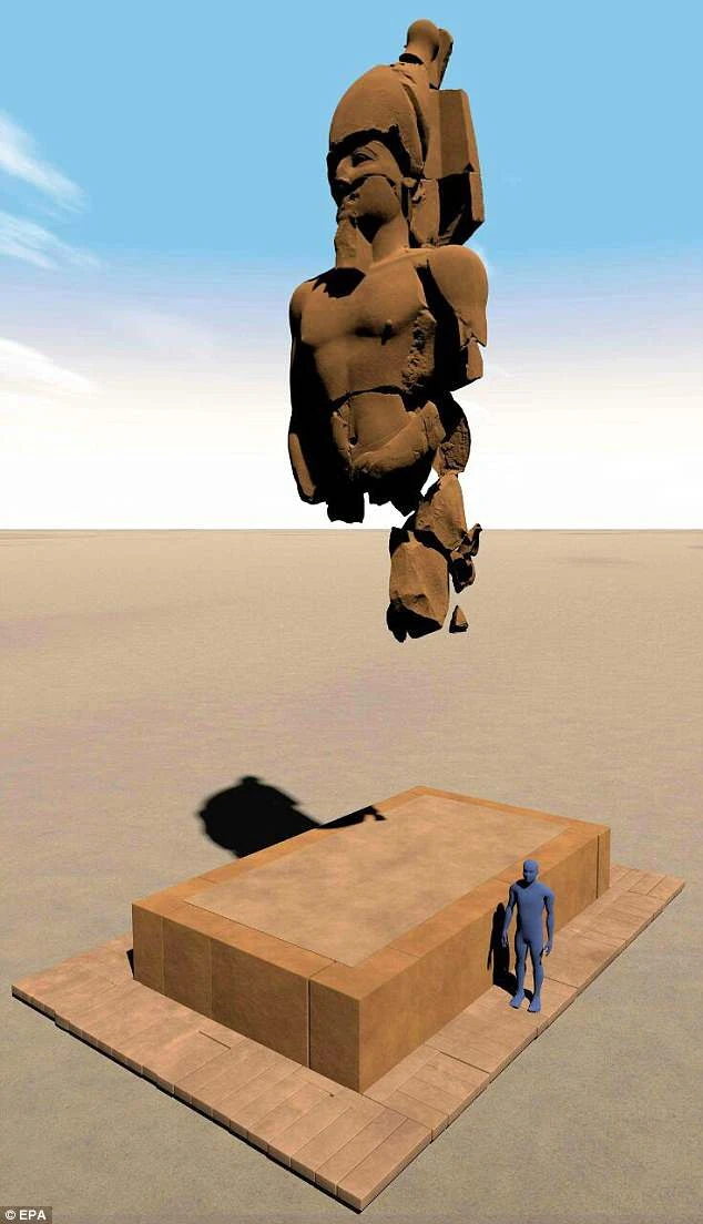 Dựa trên kích thước của các mảnh vỡ, bức tượng ước tính có thể cao 8 m và đã bị phá hủy một cách cố ý.