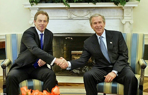 Thủ tướng Anh Tony Blair và Tổng thống Bush thời chiến tranh Iraq. Ảnh: EPA