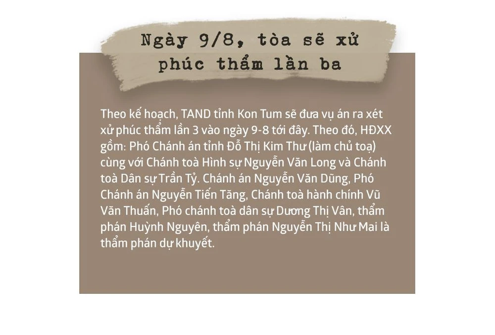 Sau nhiều lần trĩ hoãn phiên toà, đúng một năm sau (kể từ ngày toà tỉnh Kon Tum tuyên năm công dân được trắng án) TAND Cấp cao tại Đà Nẵng xét xử giám đốc thẩm, huỷ bản án toà tỉnh yêu cầu xét xử lại theo hướng có tội.