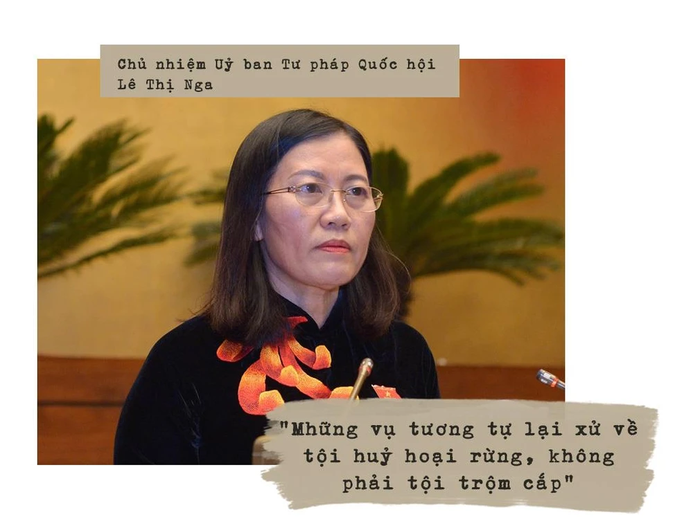 “Theo phản ánh của báo chí, những vụ tương tự như thế lại xử về tội huỷ hoại rừng, chứ không phải tội trộm cắp?”, bà Nga nêu.