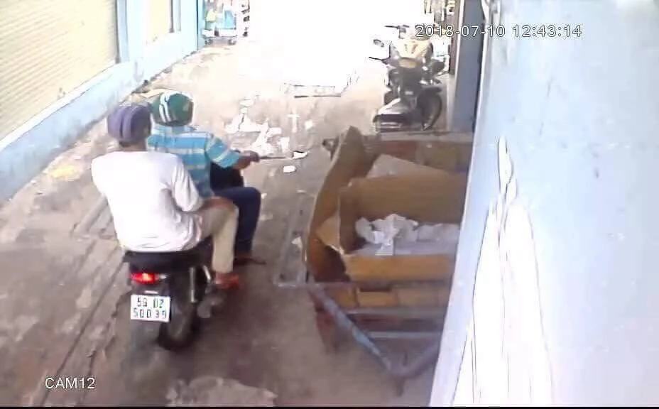 13 giờ ngày 17-9, có hai thanh niên dừng trước hẻm 353 Nguyễn Trọng Tuyển (phường 1, quận Tân Bình, TP.HCM). Cả hai mặc quần đùi, đi trên xe Wave biển số 59D2-500.39, dáo dác quan sát.