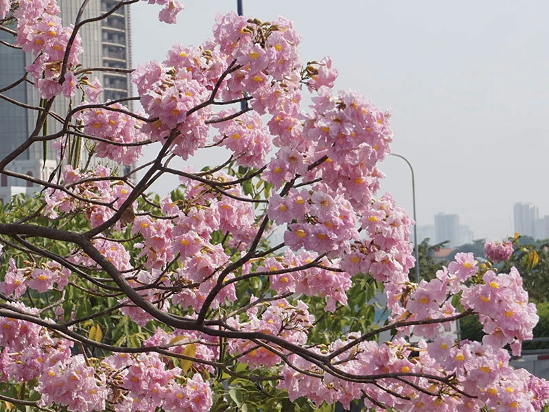 Kèn hồng nằm rải rác ở những đại lộ như Võ Văn Kiệt, có khi lại thấy ở một góc phố mới sôi động bên Thủ Thiêm. Đôi khi kèn hồng ghi dấu mình trong tòa nhà Bitexco - một dấu ấn, điểm nhấn của Sài Gòn. Cứ thế, những đóa kèn hồng điểm tô cho bao con đường, góc phố, mái nhà, xua bớt cái xô bồ, lo toan trong đời sống thường nhật của mỗi người. Và cứ thế, từng mùa hoa đi qua và đọng lại trong lòng người dân Sài Gòn - TP.HCM.