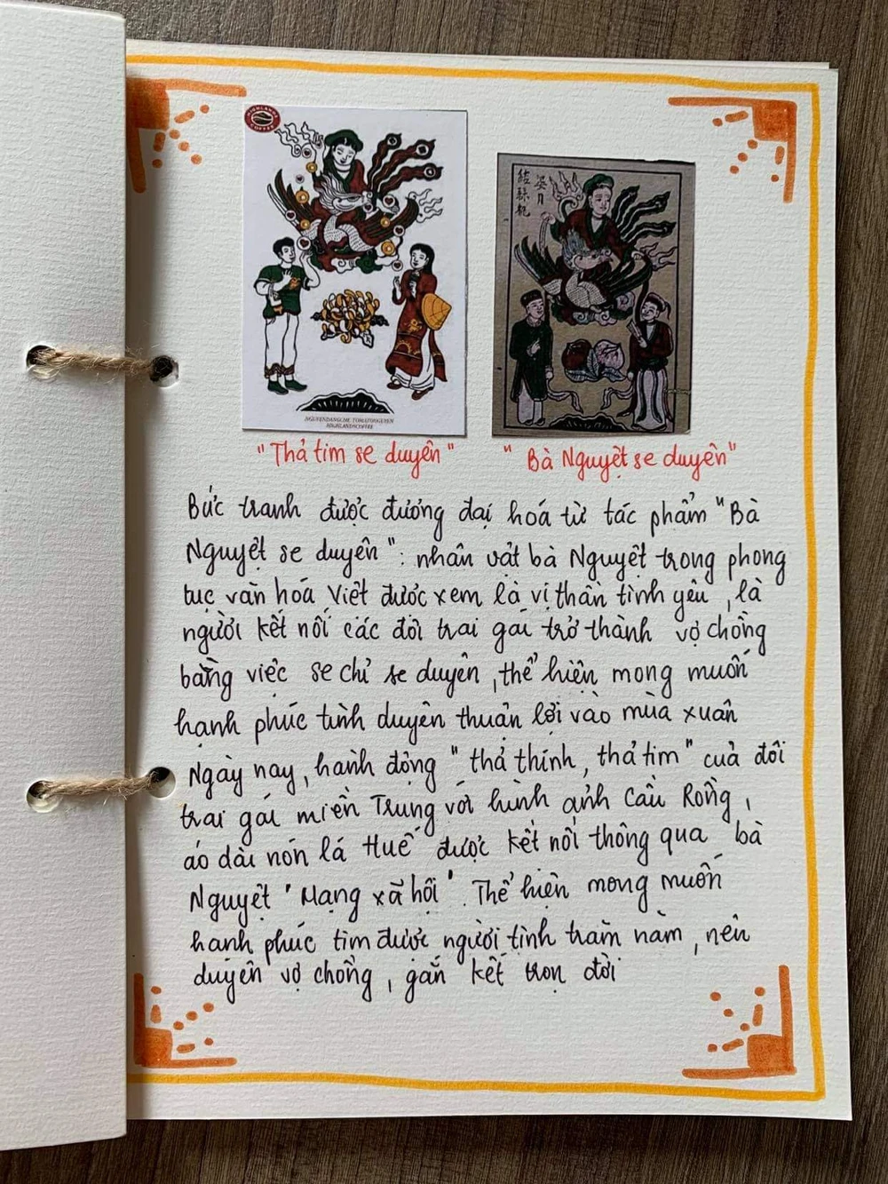 Trong hai lớp tôi dạy, có rất nhiều sản phẩm được học sinh hoàn thành tốt như: Trà đạo, Thư pháp, Thả thơ (lớp 11CL); hay Nhã phục triều Nguyễn, Áo ngũ thân (lớp 11TĐ). Nhưng tôi ấn tượng và đánh giá cao nhất tập san TRANH ĐÔNG HỒ của nhóm 3, lớp 11TĐ, do em Lai Ngọc Trâm Anh làm nhóm trưởng.
