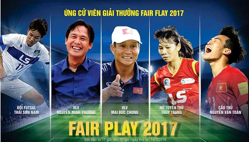 Có gần 156 phiếu bầu chọn của ban tổ chức dành cho các chuyên gia bóng đá, HLV, bình luận viên, giám sát, nhà báo chuyên trách lĩnh vực bóng đá chọn ra tập thể hoặc cá nhân đăng quang Fair Play 2017 được giữ đến giờ chót.