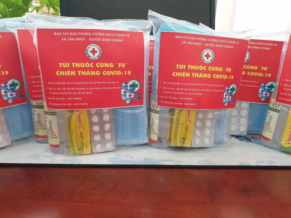 Túi thuốc phát cho F0 ở xã Tân Nhựt, huyện Bình Chánh, TP.HCM. Ảnh: C.Vân