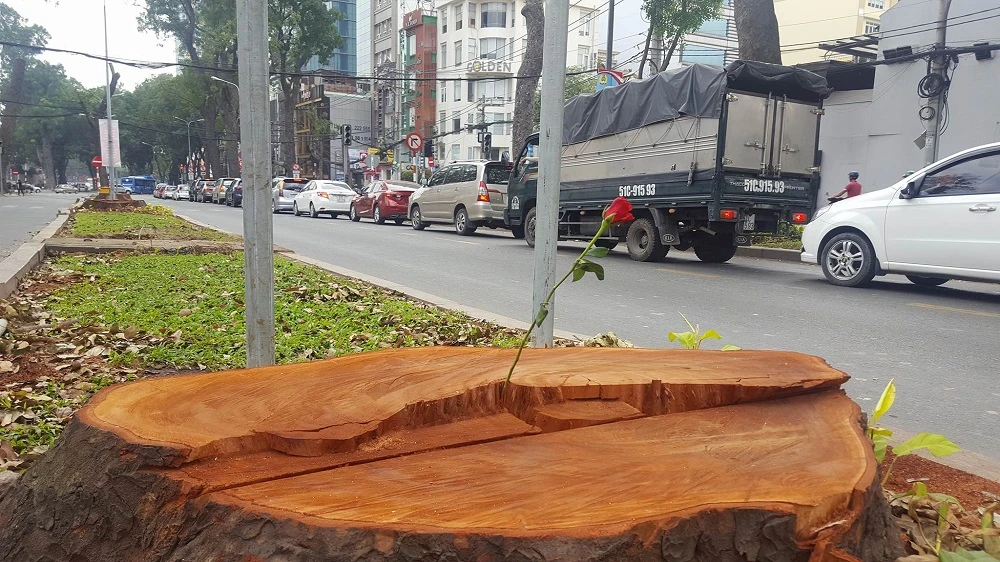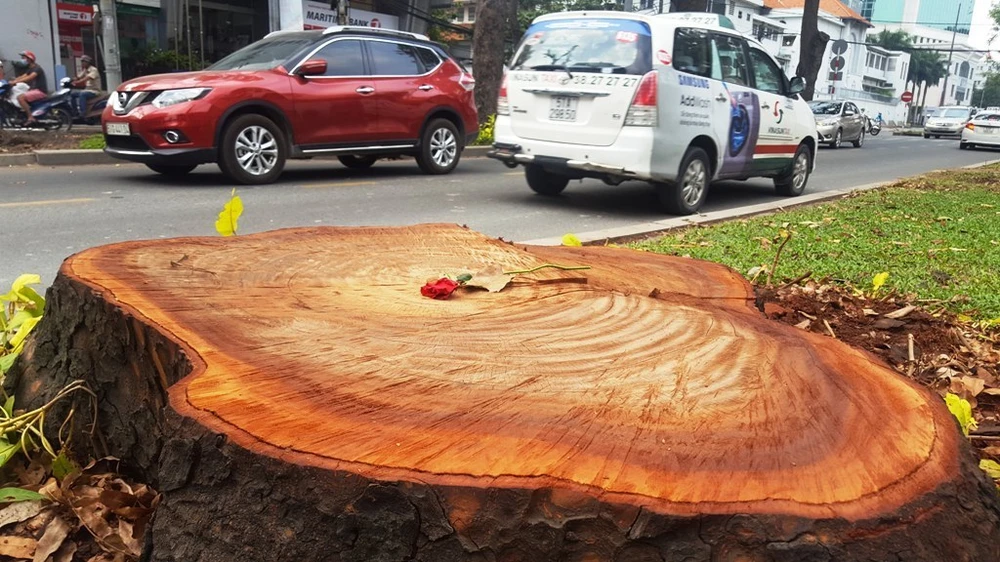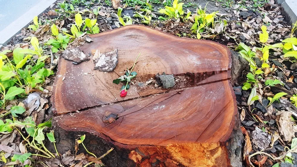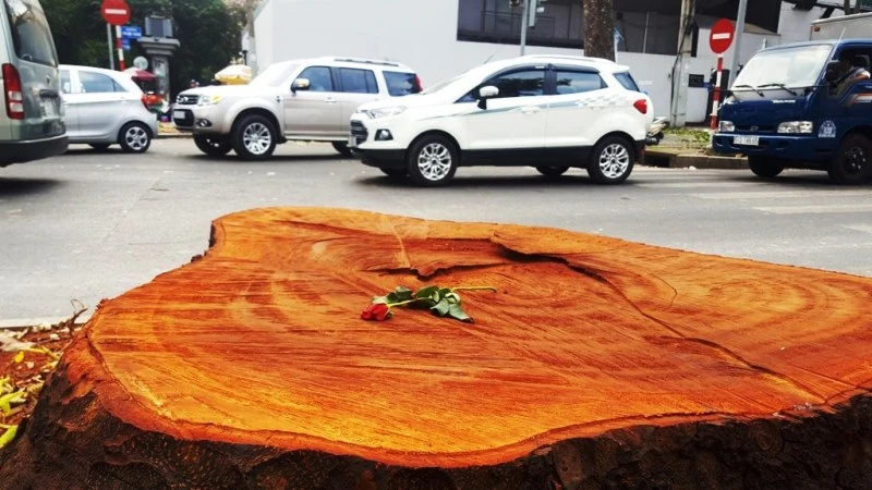 Chị Nguyễn Thị Hòa chia sẻ: "Những bông hồng đã được đặt trên mặt những gốc cây xà cừ vừa mới bị đốn hạ bỗng đẹp lạ thường. Nó đã nằm trên gốc cây ấy khoảng 3 ngày rồi nhưng vẫn còn tươi. Tôi cũng không biết ai đã làm điều này nhưng hẳn đó là người rất yêu cây cối, yêu thành phố này và đang muốn bày tỏ một chút tiếc nuối khi hàng cây lâu năm bị đốn hạ, phục vụ cho việc phát triển đô thị”.