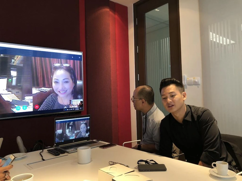 Chị Thanh Trúc trò chuyện cùng ca sĩ Đức Tuấn về vấn đề bản quyền nhạc phẩm Trần Thiện Thanh - Ảnh: QT
