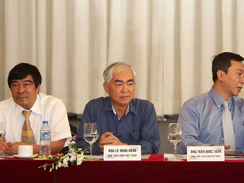 Ứng cử vào ghế chủ tịch VFF, ông Lê Hùng Dũng (giữa) muốn thay đổi rất nhiều nhưng cuối cùng lại bị động bởi cấp dưới “lèo lái”. Ảnh: XUÂN HUY