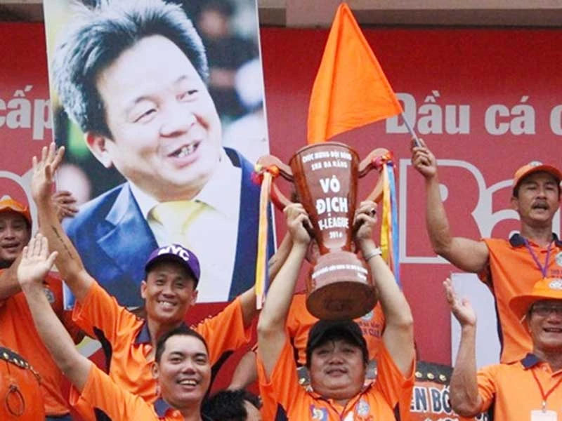 Năm năm trước, khi SHB Đà Nẵng vô địch, cổ động viên đất Quảng đã tri ân bầu Hiển dù đây là ông bầu chính thức của… Hà Nội. Ảnh: CTV