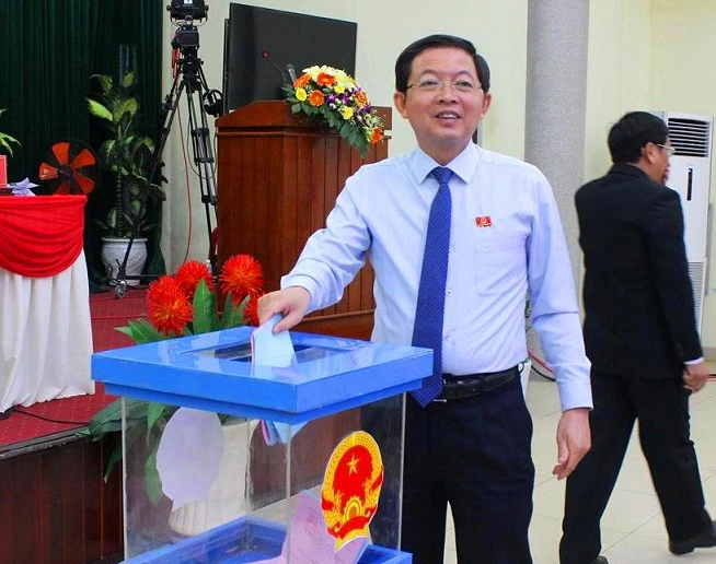 Ông Hồ Quốc Dũng, Chủ tịch UBND tỉnh Bình Định, bỏ phiếu tín nhiệm tại kỳ họp HĐND tỉnh.