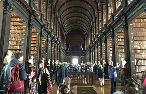 Thư viện của Trường ĐH Trinity, một điểm tham quan độc đáo và là nơi truyền cảm hứng đọc sách cho người dân Ireland: 300 năm tuổi với 200.000 cuốn sách cổ. Ảnh: T.NGUYÊN