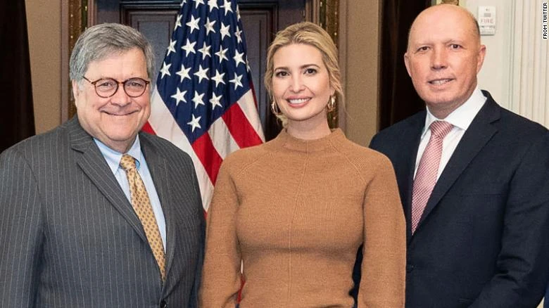 Bà Ivanka Trump chụp ảnh chung với Bộ trưởng Nội vụ Úc Peter Dutton (bìa phải). Ảnh: CNN