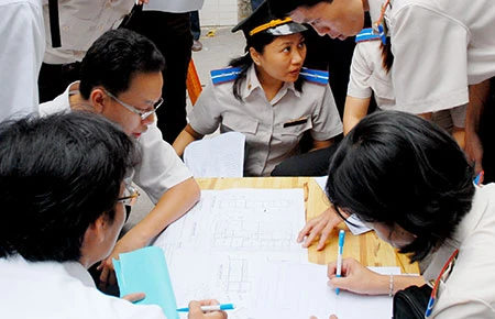 Kiểm tra bản vẽ chuẩn bị cưỡng chế thi hành án. Ảnh minh họa: HTD