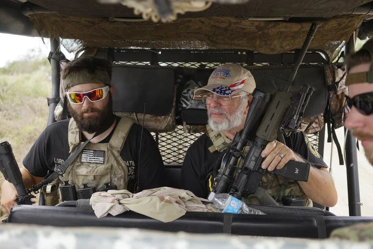 Cựu trung sĩ 25 tuổi với biệt danh “Huggie Bear”, thành viên của nhóm “Patriots”, đứng chụp hình gần biên giới Hoa Kỳ- Mexico.