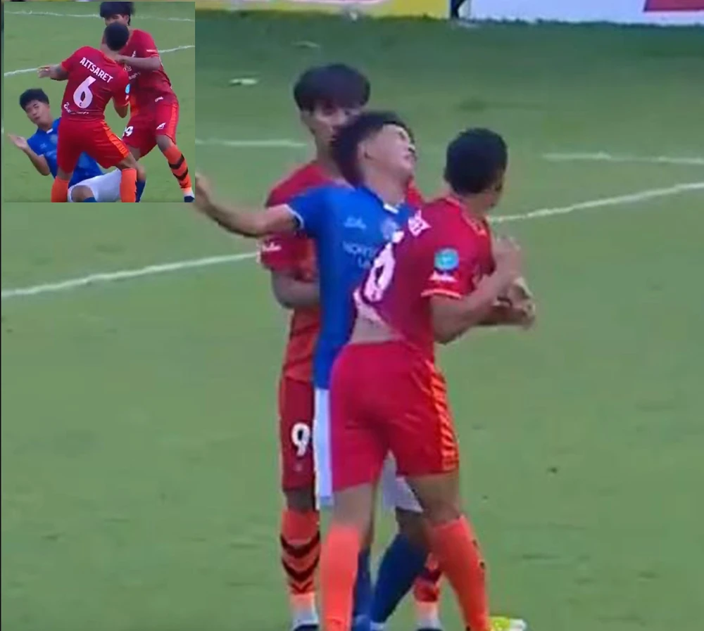 Trọng tài rút thẻ đỏ với Aitsaret, còn Supasan đổ gục và được đưa tới bệnh viện khâu 24 mũi.