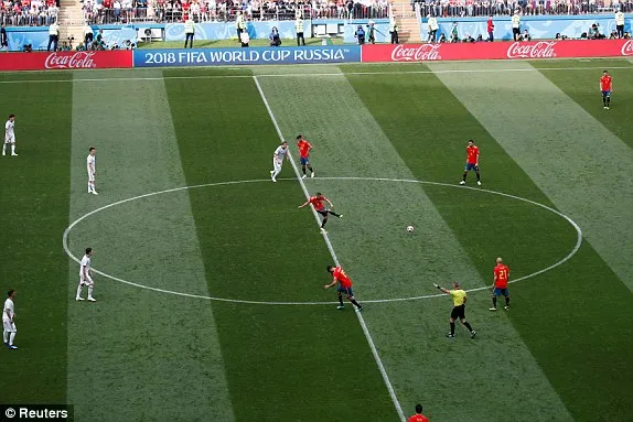 Dù bị dẫn bàn nhưng tuyển Nga vẫn không thể đẩy cao đội hình tìm bàn gỡ, các cầu thủ Tây Ban Nha đang kiểm soát thế trận quá tốt sau nửa thời gian thi đấu của hiệp 1. Thống kê cho thấy các cầu thủ Tây Ban Nha cầm đến 75% bóng.