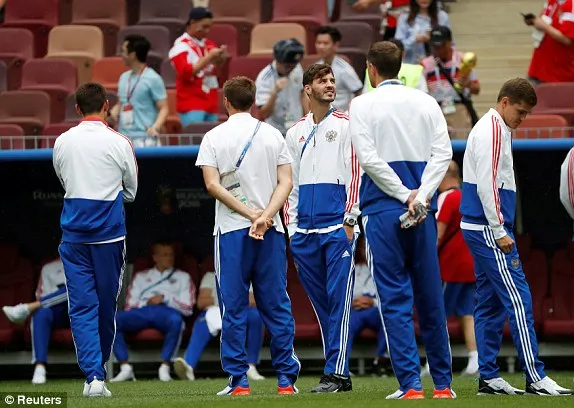 Các cầu thủ Nga ở dưới sân.