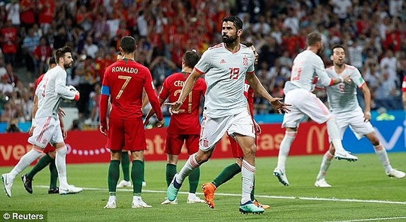 Phút 45+1, Costa có hai pha dứt điểm liên tiếp cực kỳ nguy hiểm trong đó có pha đối mặt với thủ thành Akinfeev nhưng không có bàn thắng cho Tây Ban Nha.