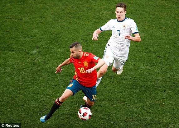 Phút 47, Jordi Alba dứt điểm bằng... gối quá nhẹ, thủ thành Akinfeev đã bắt gọn bóng.