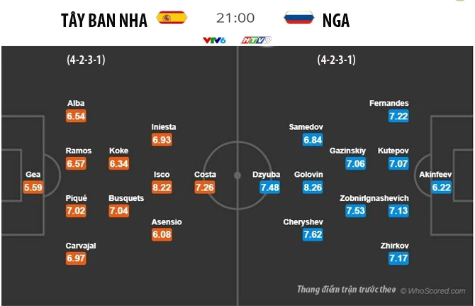 Tây Ban Nha: De Gea; Nacho, Pique, Ramos, Jordi Alba; Koke, Busquets; Silva, Isco, Asensio; Costa