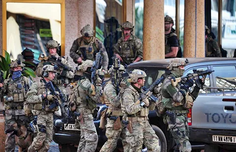 Lực lượng đặc nhiệm Pháp tham gia giải cứu con tin tại khách sạn Splendid sáng 16-1. Ảnh: REUTERS