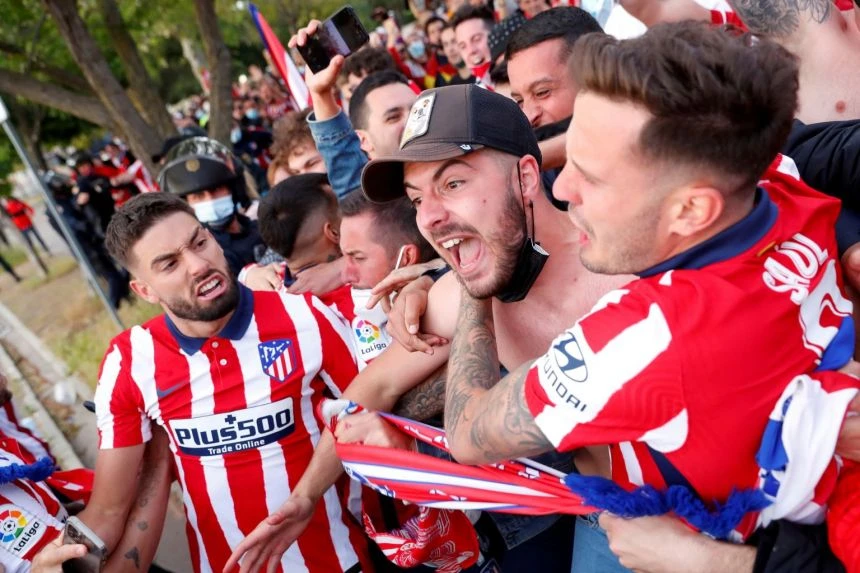 Dù tình hình dịch bệnh còn diễn biến phức tạp nhưng có đến 2.000 fan Atletico tập trung xem trận đấu qua màn hình lớn đặt tại quảng trường Neptuno và họ bất chấp khả năng lây lan dịch bệnh, ăn mừng như... điên dại.