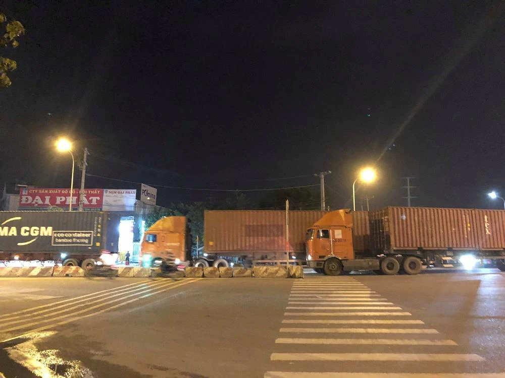 Theo ghi nhận của phóng viên PLO, cao điểm tối ngày 28-6, nhiều container nằm xếp hàng trên vòng xoay Phú Hữu để đi vào cảng Cát Lái. Thậm chí, container còn xếp dài từ nút vành đai 2 dẫn xuống đường Võ Chí Công, vòng xoay Phú Hữu khiến tình hình giao thông bị hỗn loạn. Đường nhỏ, số lượng container dày đặc, các xe máy chỉ đành len lỏi qua các kẽ hở giữa hàng trăm container đang dàn hàng trên đường.