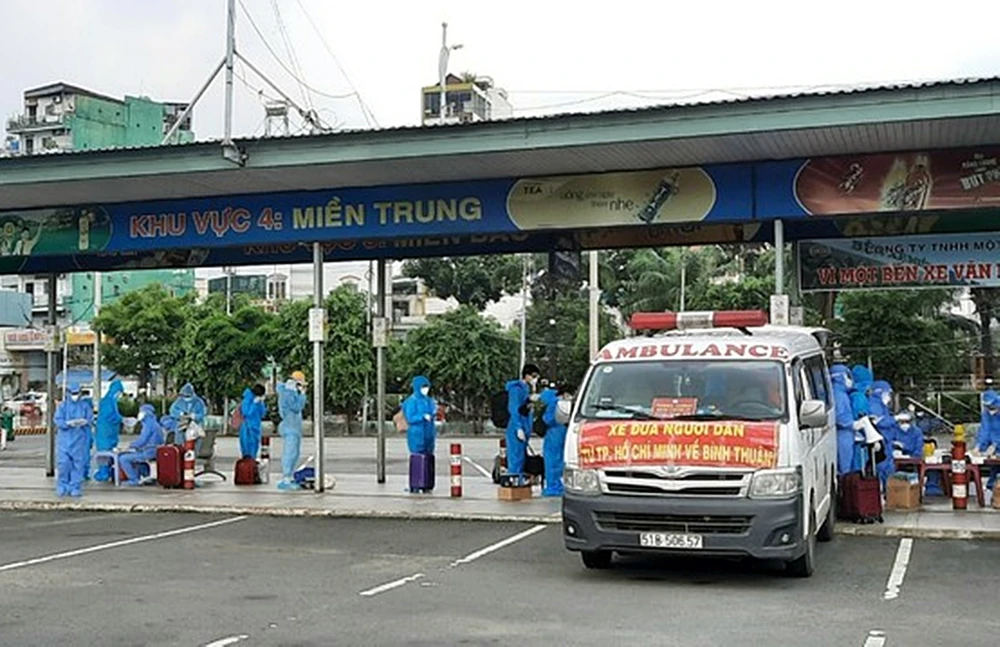 Đây là đợt thứ 4 (từ ngày 1-8 đến nay) với hơn 1.100 người mà tỉnh Bình Thuận tổ chức đón về từ vùng dịch, “chia lửa” với TP.HCM.
