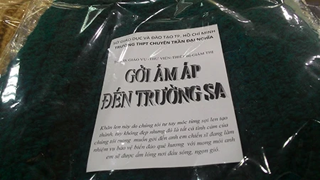 Sản phẩm tự đan của tổ giáo vụ-thư viện-thiết bị -giám thị ở trường THPT Chuyên Trần Đại Nghĩa gửi đến Trường Sa với lời nhắn gửi rất chân tình.