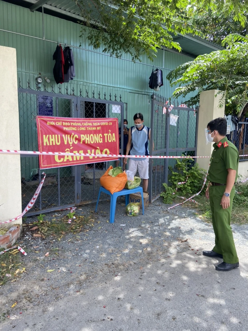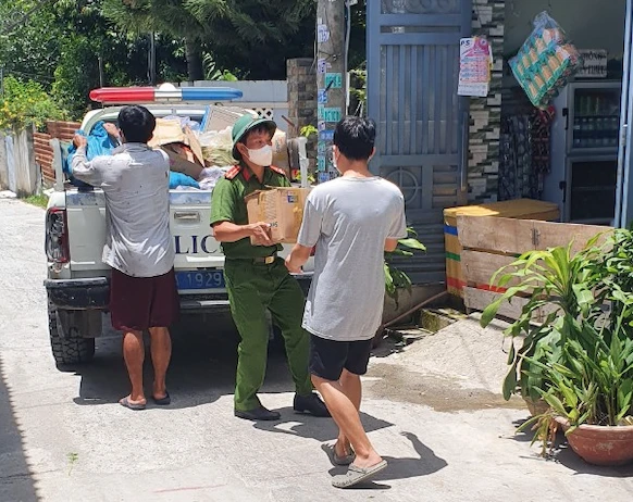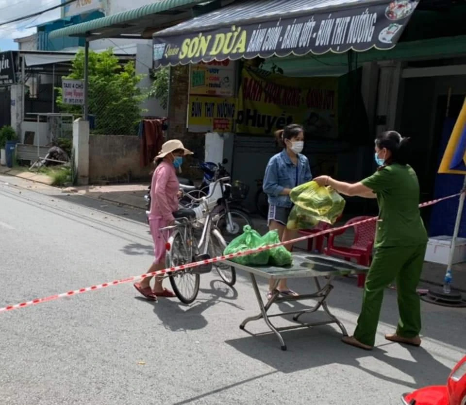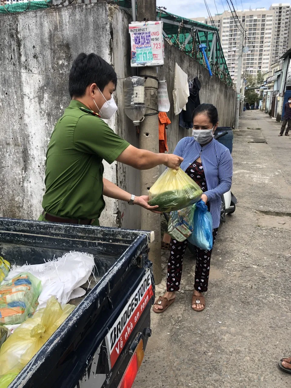 Công an thành phố Thủ Đức hỗ trợ người dân ở khu phong toả. Ảnh: CTV