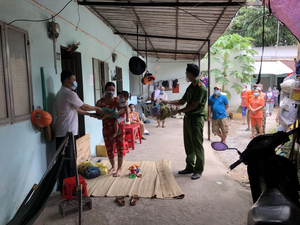 Công an phường Long Thanh Mỹ mong phần nào san sẻ khó khăn với bà con lao động trong mùa dịch bệnh. Ảnh: CTV