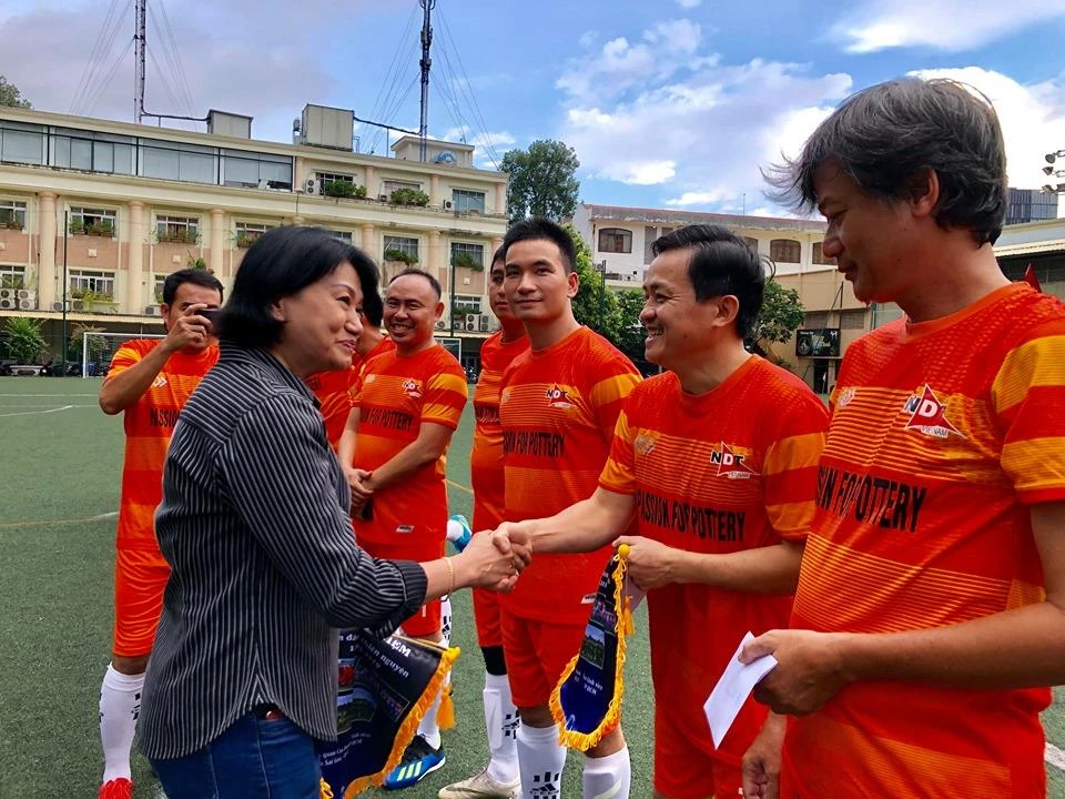 Đội Cựu Sinh viên TP.HCM nhẹ nhàng vượt qua Cựu Doanh nhân Sài Gòn - Bi FC 7-5 trong tiếng cười vui vẻ như chưa hề có chuyện thắng thua.