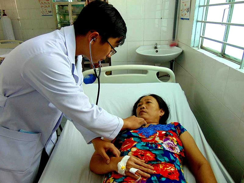 “Đang dọn dẹp nhà cửa thì tôi bị đau bụng nên kêu con gọi xe hơi chở tới PKĐK Tân Quy (xã Tân Thạnh Đông, huyện Củ Chi, TP.HCM). Tới nơi, tôi được bác sĩ (BS) đưa ngay vô phòng cấp cứu truyền nước biển và khám. BS nói tôi bị viêm dạ dày cấp nên cho uống thuốc và theo dõi. Nhẹ thì cho về, nặng phải chuyển tới BV huyện Củ Chi mổ” - bà Trần Thị Xíu (51 tuổi, ở xã Hòa Phát, huyện Củ Chi) kể.