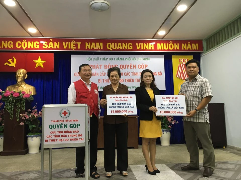Tại trụ sở cơ quan Hội chiều nay, các cấp hội và các nhà hảo tâm đã quyên góp hơn 500 triệu đồng gửi đến đồng bào gặp nạn do lũ lụt ở các tỉnh miền núi phí Bắc, Bắc trung bộ. Cũng tại đây, hai manh thương quân khi biết tin về phóng viên gặp nạn cũng thông qua đại diện cơ quan Thông tấn xã ở phía Nam gửi 25 triệu đồng đến gia đình phóng viên này.