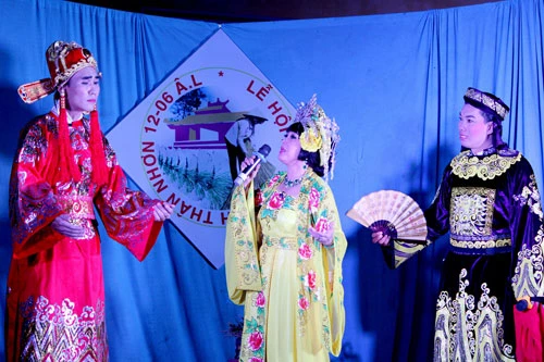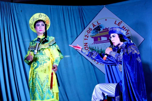 Tiết mục Đình Thân Nhơn quê tôido nghệ sĩ Kim Hương và Tấn Phát thể hiện Ảnh: Hoàng Giang.