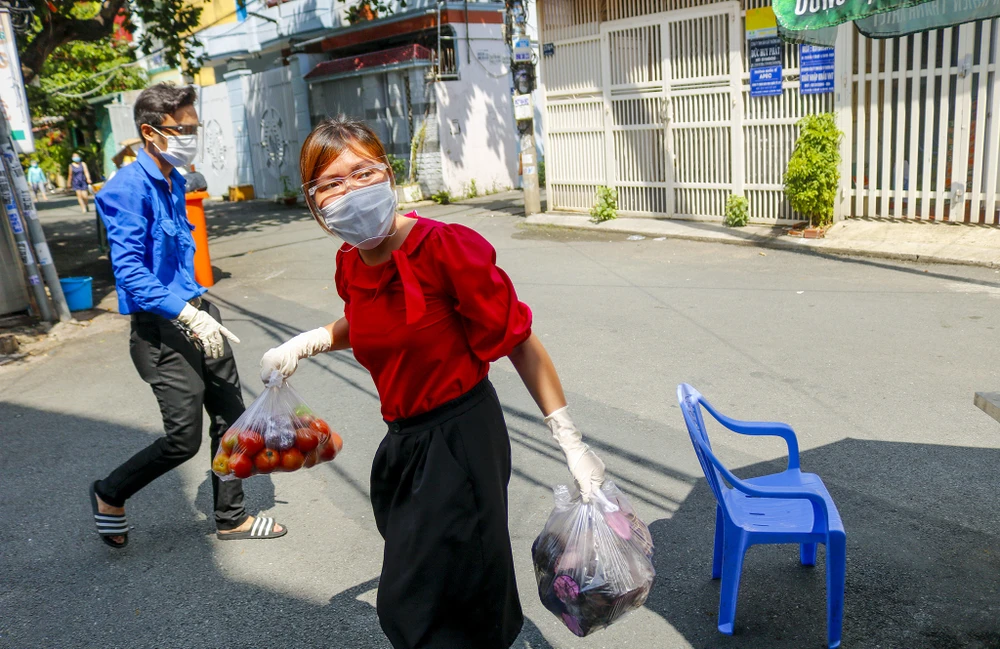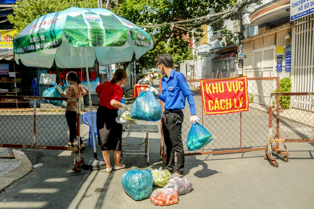 Những hộ dân đang chịu cách ly tại hẻm 17, đường Gò Dầu, phường Tân Quý, quận Tân Phú, TP.HCM những ngày qua được nhận nhu yếu phẩm từ "Gian hàng 0 đồng". Đây là hoạt động do UBND phường Tân Quý phối hợp với các lực lượng liên quan tổ chức thực hiện nhằm tiếp sức cho bà con yên tâm thực hiện việc cách ly.