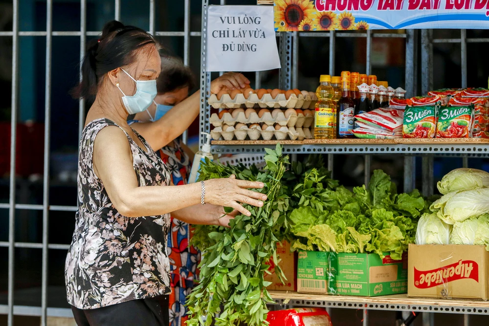 Đặc biệt, rau củ quả là thứ không thể thiếu trong "Gian hàng 0 đồng". Chị Nguyễn Ngọc Trúc Linh, Chủ tịch Hội Liên hiệp Phụ nữ phường Tân Quý cho biết: Trung bình mỗi ngày chúng tôi sẽ lấy từ 80-90 ký rau củ để cung cấp cho bà con, cách hai ngày sẽ thay đổi những mặt hàng rau củ một lần để bữa ăn của bà con được đa dạng.