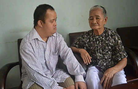 Mẹ Trước chăm sóc cho người con út tật nguyền. Ảnh: TẤN TÀI