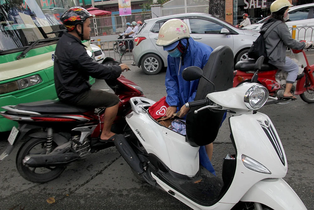 Gần giờ tan tầm, lượng xe lưu thông rất khó khăn nhưng người Sài Gòn không ngại chờ nhau vài phút chỉ để bỏ tiền quyên góp người dân miền Trung.