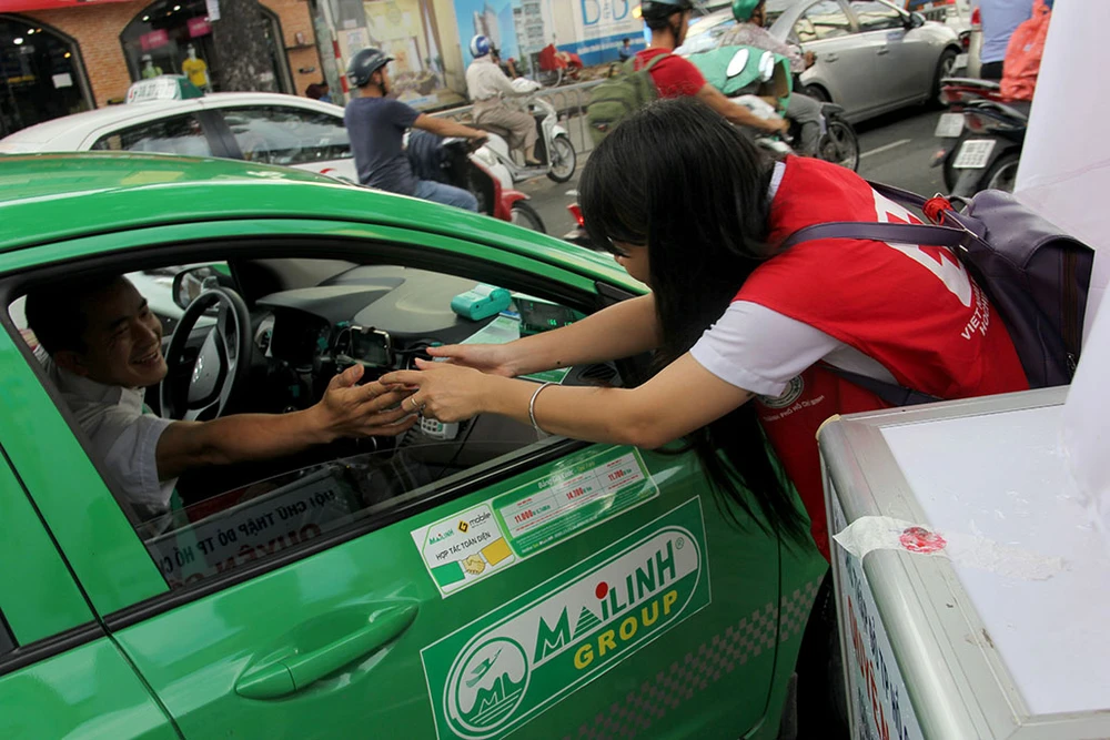 Tài xế taxi dừng lại, quyên góp tiền ủng hộ.